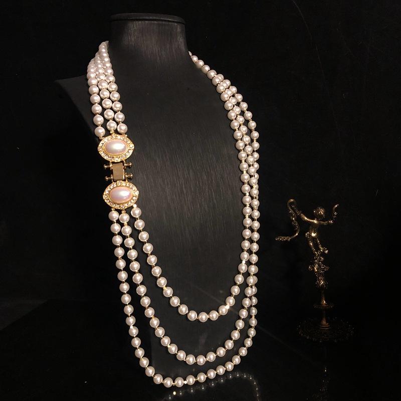 Multi-layer Glazed Pearl Green Crystal Diamond Long Necklace Versatile Sweater Chain Women