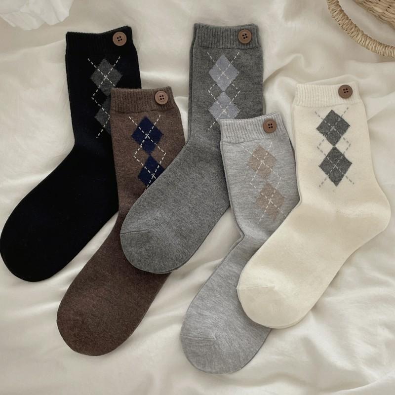 Diamond-shaped Wool Socks, Mid-calf Socks, Autumn and Winter Women's Casual Thickened Warm Women's Socks, Pile Socks