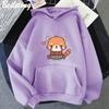 Anime Cute Little Red Panda Playing Video Hoodie for Men Women Casaul Loose Sports Hooded Sweatshirts Unisex Y2k Clothes Tops