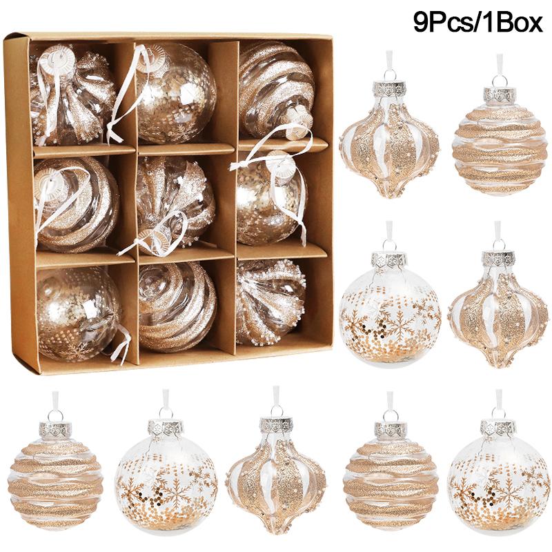 9PCS 8CM Christmas Balls Decorations Champagne White Xmas Tree Hanging Ornaments Pendant 2025 New Year Party Home Decor Navidad