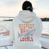Respect The Local Hoodie Local Surf Hooded Sweatshirt Beach Bum Shark Graphic Pullover Vintage Ocean Conservation Beach Hoodies