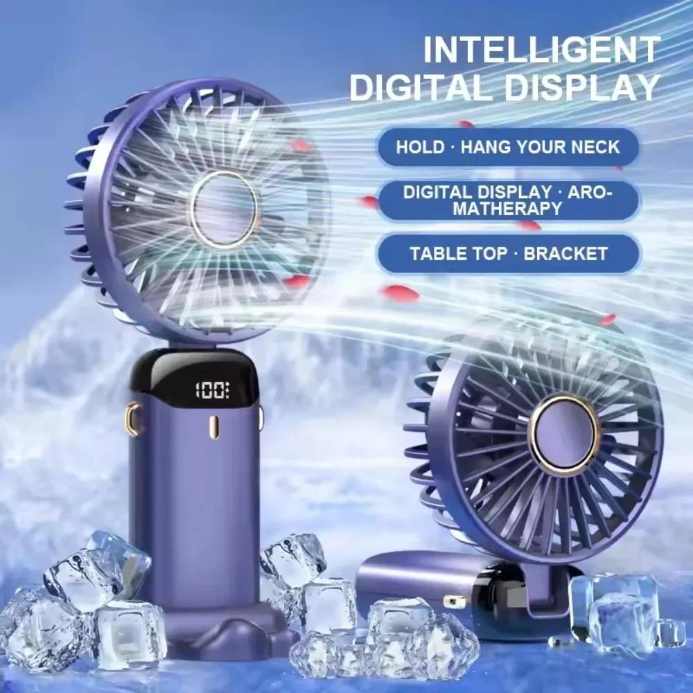 USB Handheld Mini Fan Foldable Portable Neck Hanging Fans 5 Speed USB Rechargeable Fan with Phone Stand and Display Screen
