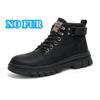 New Design Simple Men's Ankle Boots Handmade Casual Leather Biker Boot Autumn Winter High Top Shoes Plush Fur Motorcycle Botas