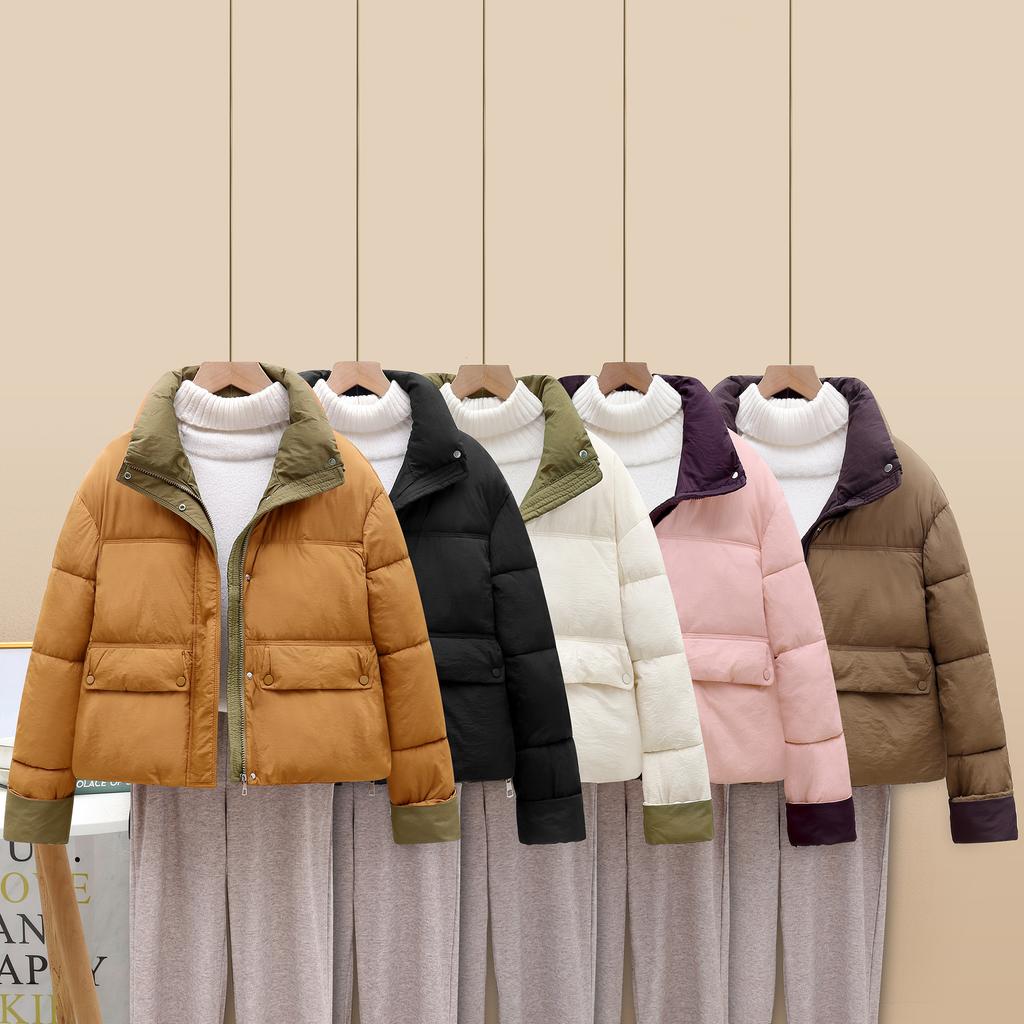Down Cotton Jacket Women's Short 2025 Autumn/winter Korean Version of the Bread Jacket Thickened Loose Color-blocking Stand-up Collar Jacket