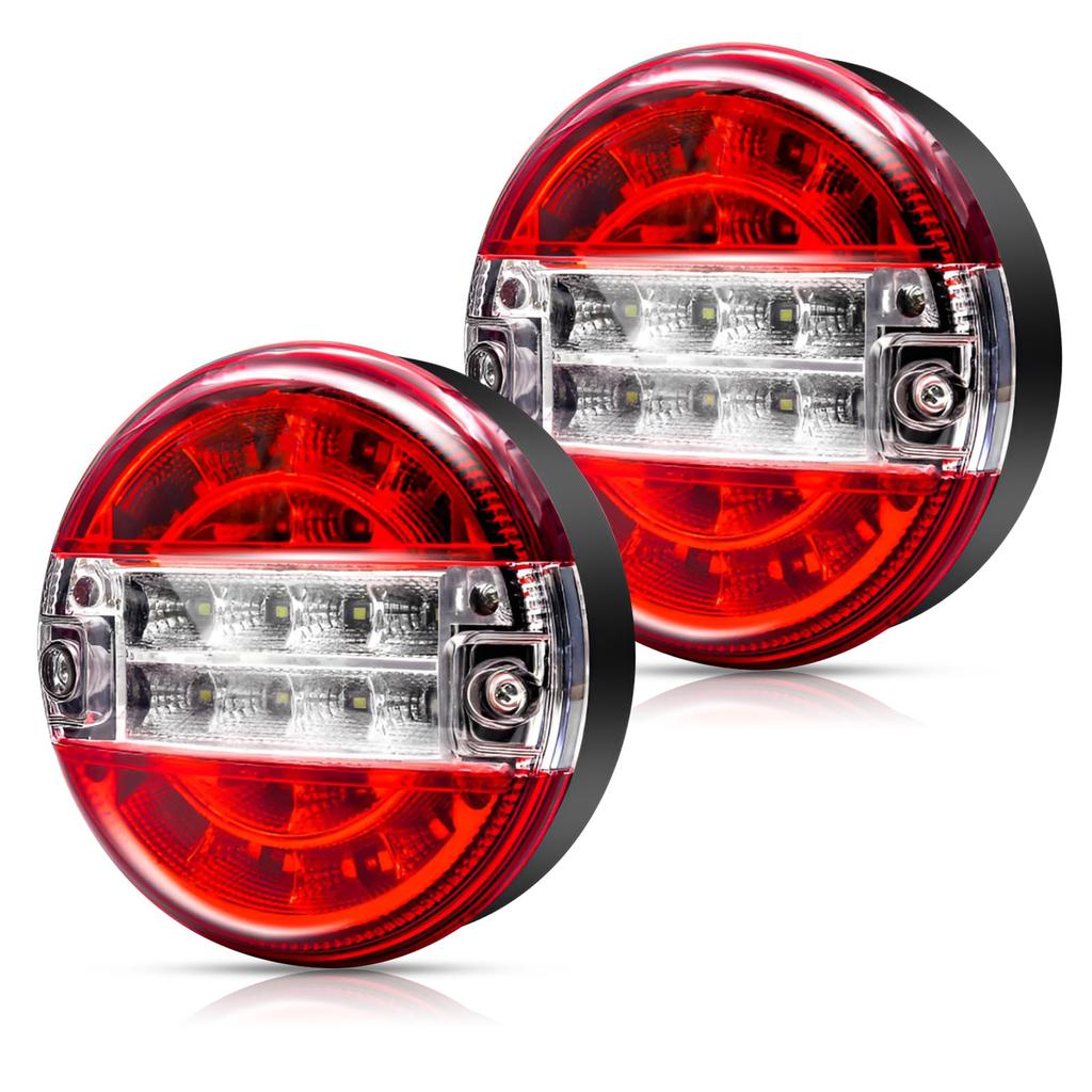 LED Truck Tail Light, 24V Round Tail Lamp Signal Light Brake Light Red & White