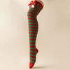Christmas Red and Green Striped Knee Socks for Women In Ins College Style Bow Hairball Cotton Knee Protector Long Socks Trendy