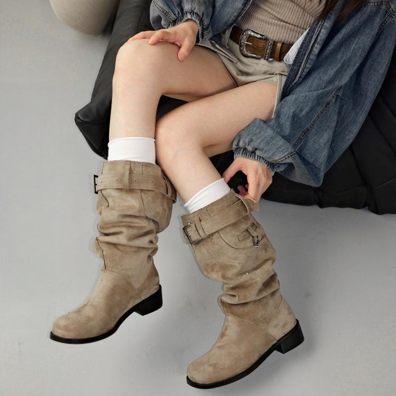 But Knee Boots Women's Autumn 2025 New Thick Heel Round Head Thin Tall Knight Boots Pleated Pile Boots