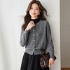 Srcr Women's 100% Pure Wool Short Knitted Cardigan with 3D Floral Design