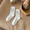 Grey Socks, Women's Retro Deer Cotton Socks, Mid-calf Socks for Autumn and Winter, Ethnic Style, Pile Long Calf Socks