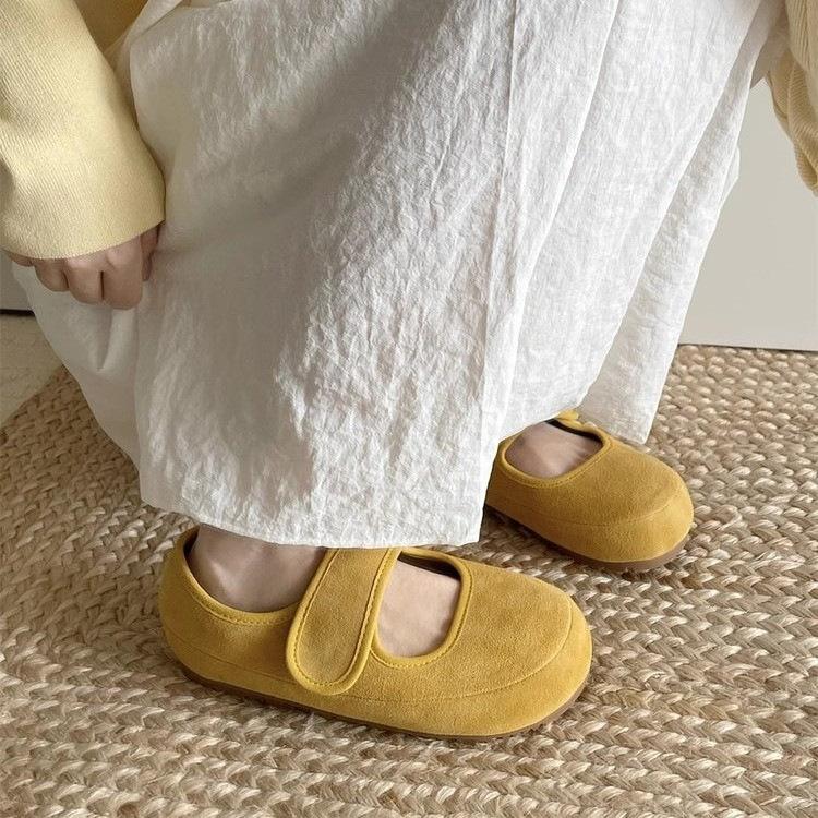 Leather Platform Velcro Doudou Shoes Women's 2025 Spring New Mary Jane Single Shoes Shallow Mouth Comfortable Versatile Women's Shoes