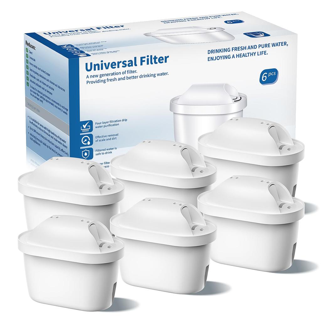 BREAUILL Compatible Filter Cartridges for BRITA MAXTRA Water Purifiers, Removes Chlorine and Other Harmful Substances, 6-Piece Set