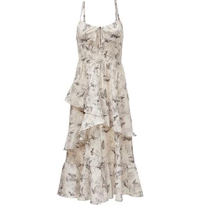 Romantic Floral A-Line Spaghetti Strap Dress for Women, Spring Arrival, French Seaside Vibe, Stunning Waist-Cinched, Wide Hem Design