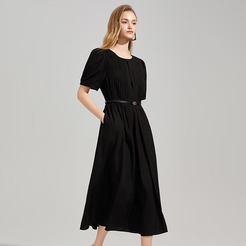 Shetu Round Neck Short Sleeve Mid-length Dress