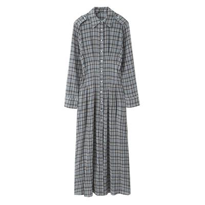 Spring And Autumn French Checkered Shirt Skirt Waist Wrapped Slim Dress