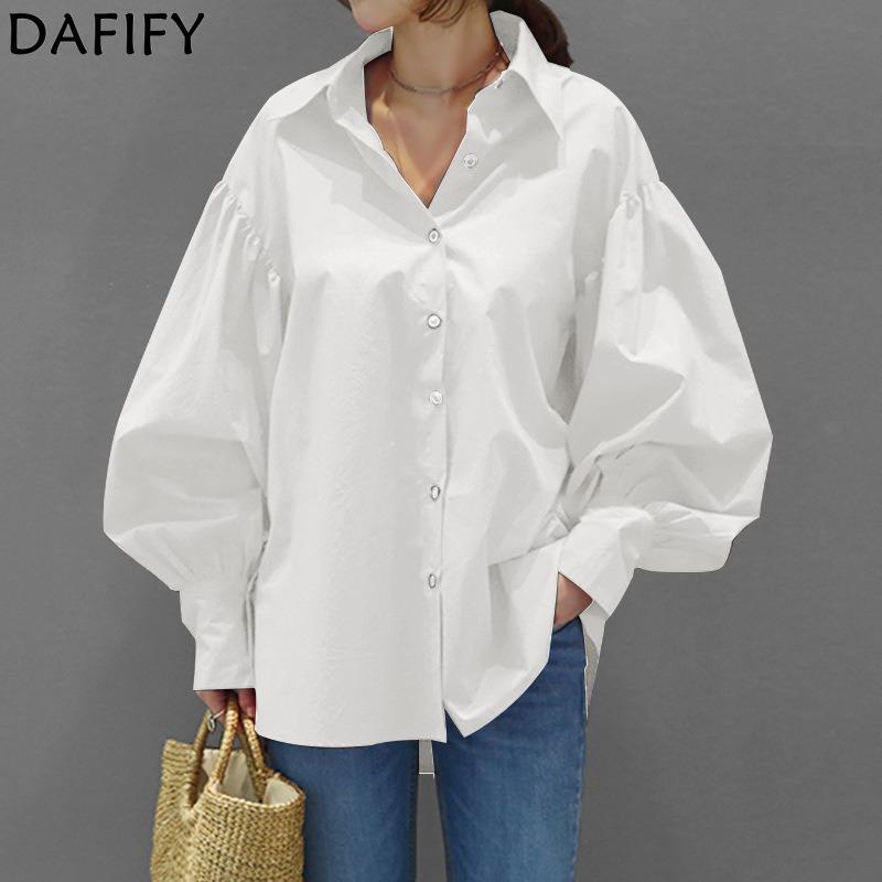 DAFIFY Women's Fashion Casual Spring Autumn Solid Color Print Long Sleeve POLO Neck Blouses & Shirts