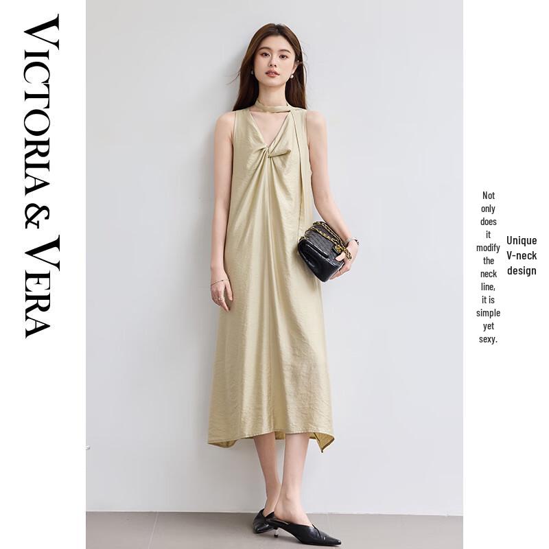 VICTORIA&VERA Women's Sleeveless V-Neck Twisted Midi Dress V9012L04