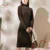 SinoFrodo Women's 100% Cashmere High-Neck Midi Dress