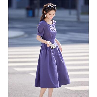 Si Shui Nian Hua Petite Slimming Purple Round Neck A-line Dress