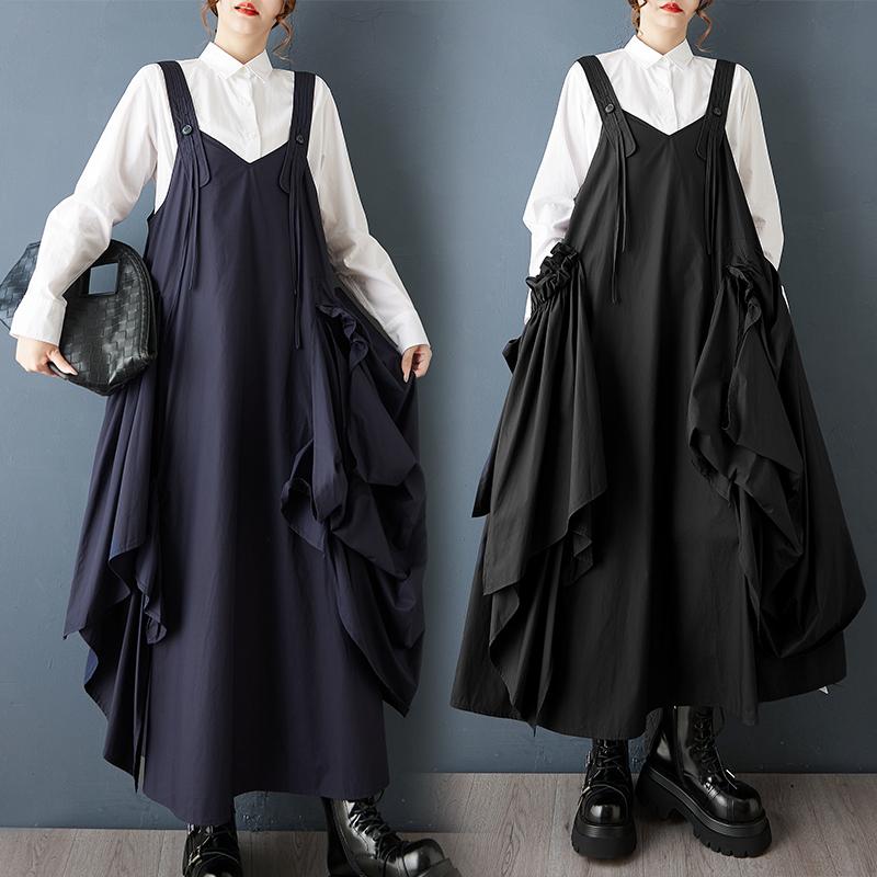 DIMANAF 2025 Autumn Women Plus Size Casual Long Dress Loose Fashion Lady Sleeveless Solid Black Maxi Dress