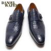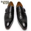 Classic Mens Dress Shoes Genuine Leather Buckle Monk Strap Pointed Toe Wedding Shoes Crocodile Pattern Business Formal Shoes Men