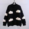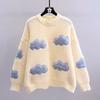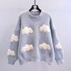 Women Cloud Pattern White Sweater Japanese Cute Round Neck Knitted Shirt Autumn Loose Versatile Female Pullover Top