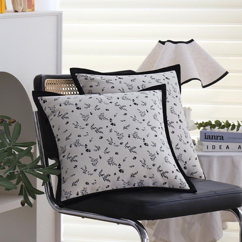 French Floral Pillow Living Room Sofa B&B Hotel Model Room Black and White Cushion Pillow Case