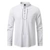 Men's Lace-Up Stand Collar Long Sleeve Shirt Casual Retro Top for Men Spring Autumn Fashion Multi-Color Male Blouse