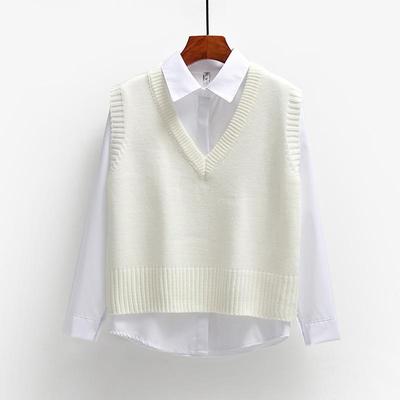 Spring and Autumn Korean Versatile V-neck Sweater Vest Women's Loose Fitting Student Sleeveless Knitted Camry Shoulder Knitted Cotton Vest