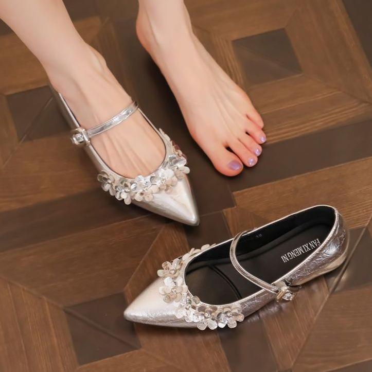 Shallow Single Shoes Women's 2025 Autumn New Heightening Rhinestone Super Foreign Style Word Belt French Mary Jane Women's Single Shoes