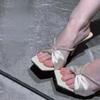 2025 New Summer Nude Rhinestone Square Head Sandals Women's Fine Heel Temperament Beautiful Women's Cool Slippers High Heels