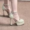 Beautiful Sequins Waterproof Table High Heels Women's 2025 Spring and Summer Thick Heels Not Tired Feet New Wedding Dress Bridal Shoes Wedding Shoes