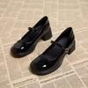 Versatile Round Head Thick Heel British Style Black Retro Small Leather Shoes for Women's New Shallow Mouth French Mary Jane Small Leather Shoes Fo