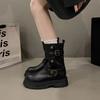 Brown Medium Tube Wear Heightening Spring and Autumn British Style Martin Boots Thick Sole Fold New Fashion Two Children Short Boots 2025