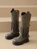 2025 Autumn and Winter Europe and the United States New Belt Buckle Knight Boots Rivet Belt Buckle Foreign Trade Large Size Medium Boots