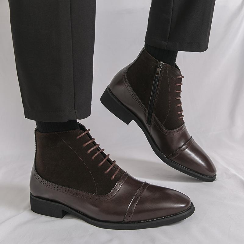 Retro Men Business Chelsea Boots Black Brown European American Casual Lace-up Office Business Formal High-top Leather Boots Men