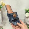 New Denim Lion Head Women's Flat Slippers, Denim Bag, Low-heeled Women's Fashionable Slippers and Bag Set