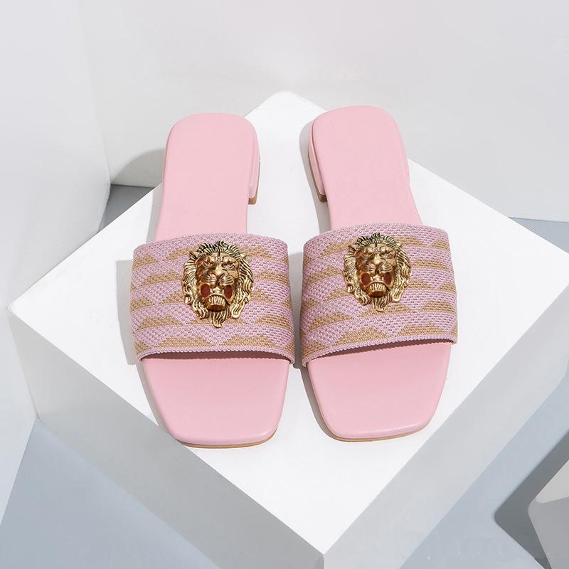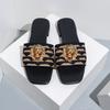 New Women's Embroidered Low Heels Slippers Europe and the United States Large Size Square Head Sandals Leather Shoes