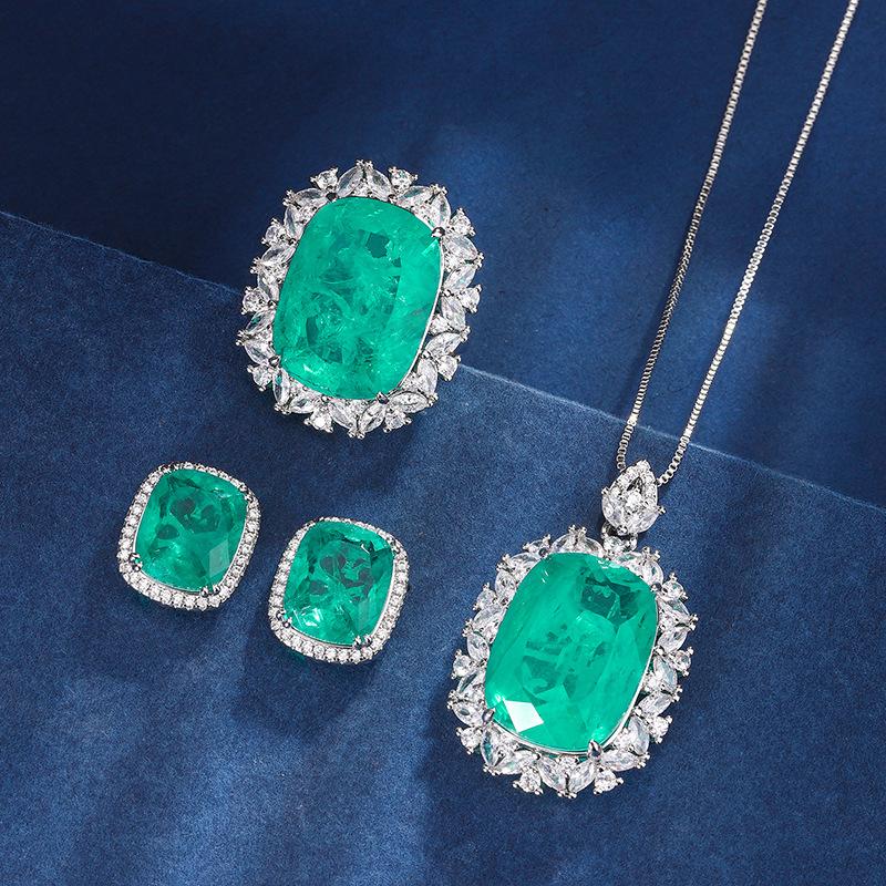 Jewelry Copper Bottom Gold-Plated Simulation Emerald Set Temperament Full Diamond Luxury Set 15 * 20-10 * 12