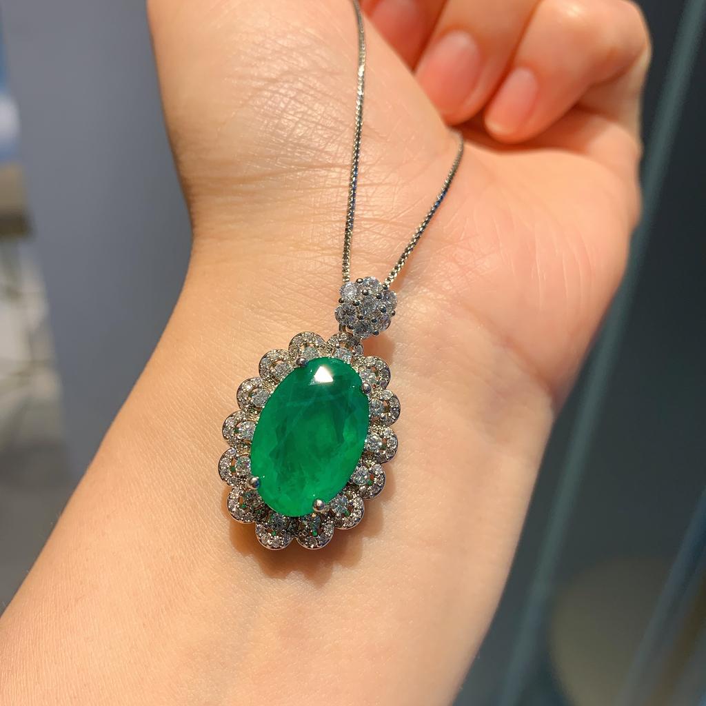 Jewelry Wind Simulation Emerald Necklace Jewelry Set Main Stone Ring 8 * 10 Pendant 12 * 16