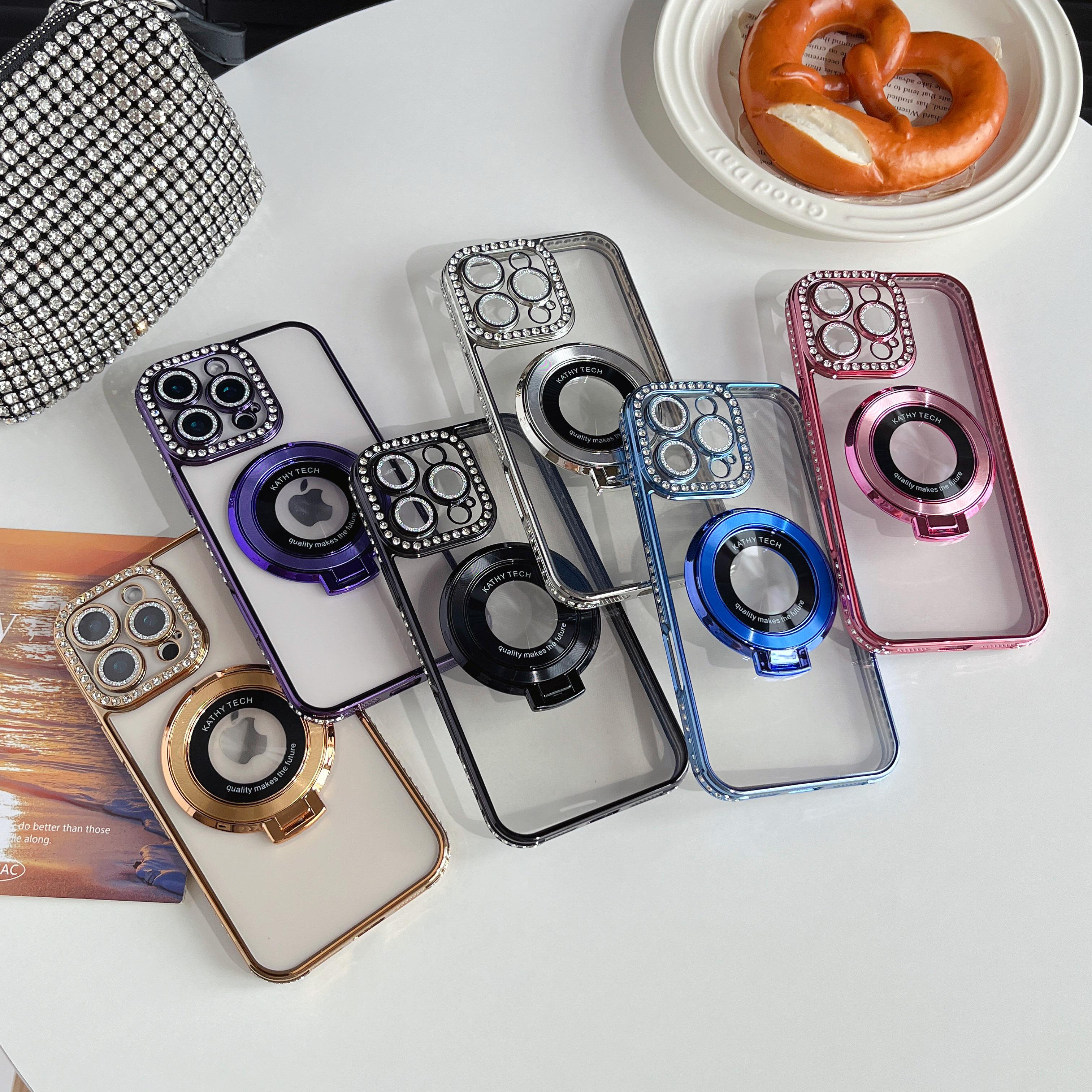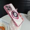 Magnetic Plating Glitter Diamond Camera Lens Protector Bumper Phone Case With Stand For iPhone 17 16 15 Pro Max Samsung S25 S24 Clear Protective Cover