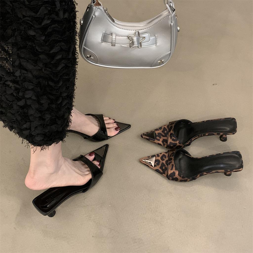 Skirt Summer New Niche Women's Shoes Cool Slippers Outer Wear with Pointed High Heels Sandals French 2025 Leopard Print