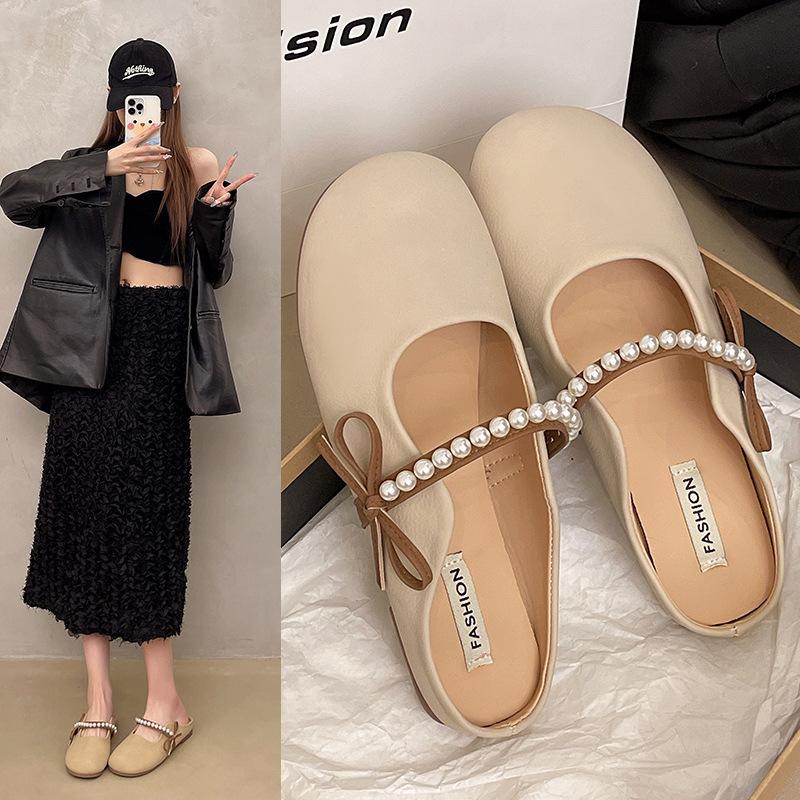 Single Shoes Soft Sole Head Night Bow Bag 2025 New Evening Wind Half Slippers Women's Summer Wear Flat Bottom Cool Slippers Half Tray