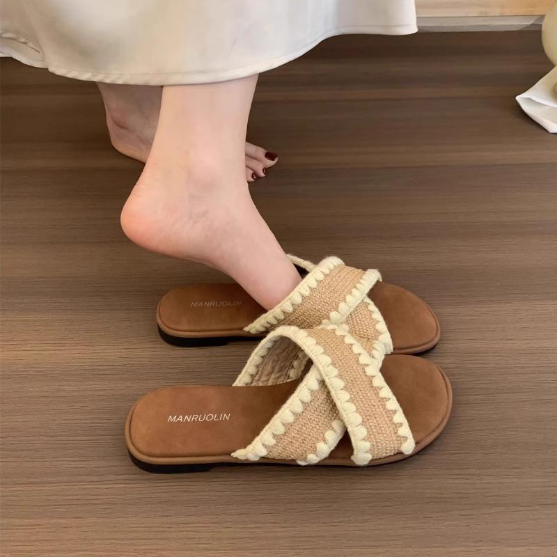 Ethnic Style Woven Cross-strapped Open-toed Flat-bottomed Slippers for Women's Summer Wear Bohemian Seaside Vacation Beach Sandals