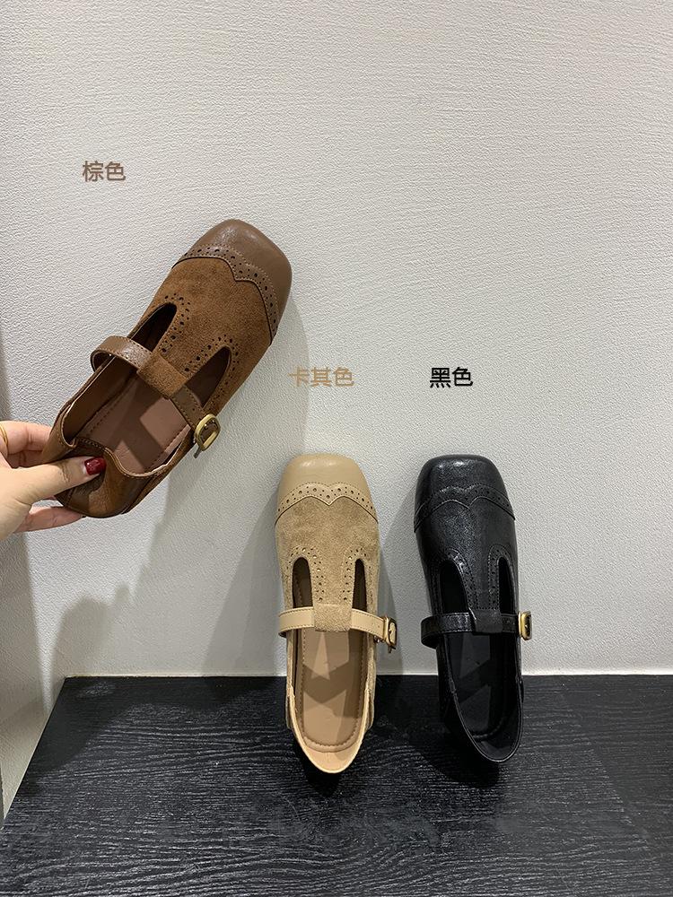 Retro Carved Square Head Shallow Mouth Single Shoes Flat-soled Small Leather Shoes Women's Niche Design French Mary Jane Shoes Autumn Women's Shoes