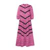 Features:V neck, three quarter sleeves, puffed sleeves, geometric stripes, lotus leaf pocket long dress