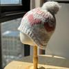 Cold Hat Fair Isle Style Love Fur Ball Ear Protection Wool Hat for Women Autumn and Winter Warm Versatile Knitted Hat