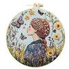 1set Simple Linen Oil Painting Girl Series Cross Stitch Embroidery Material Kit - Easy Tutorial for Beginners, Tools and Fabric Craft Material Kit