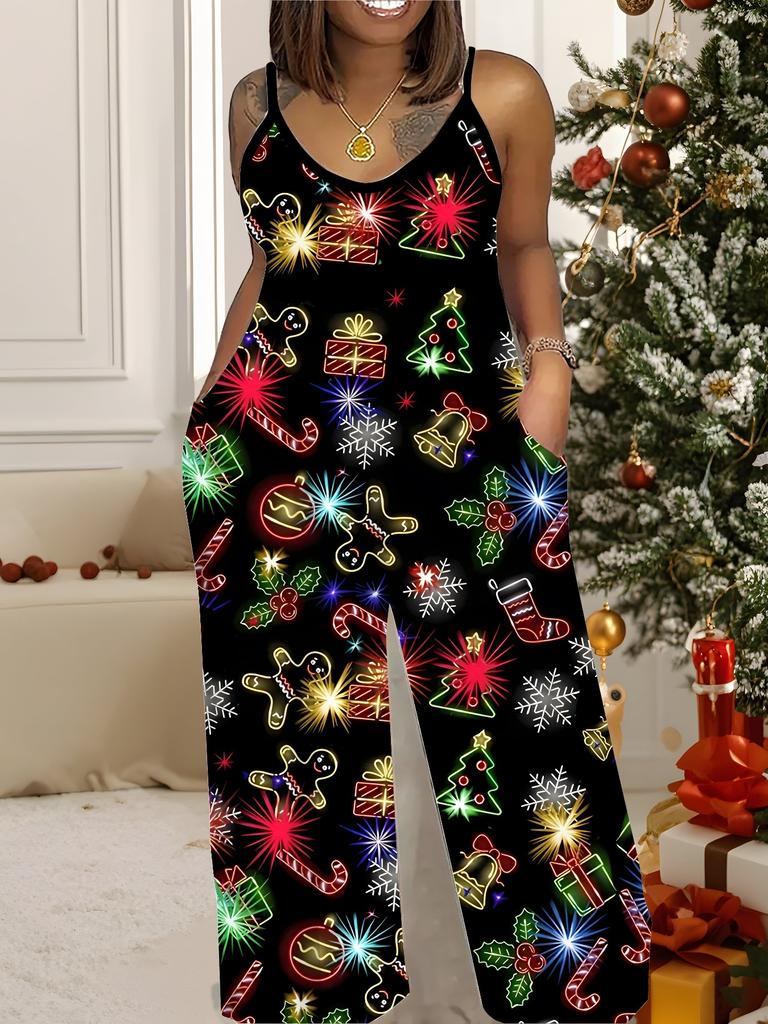 Women's Fashion Jumpsuit, Plus Size Clothing Daily Casual Fashion Wear, Graphic Christmas Printing Design, Party Parties, Christmas Clothing