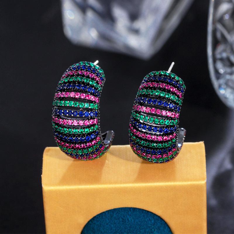 Vintage Light Luxury Caterpillar Hollow Color Gradual Change Zircon Circle Earrings Needle C-Shaped Earrings