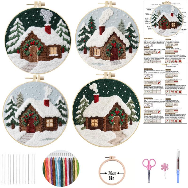 1 Set Winter Snowscape Cabin DIY Embroidery Material Kit, Suitable for Beginners, Includes Tools and Stitch Tutorial, Embroidery Fabric Material Kit